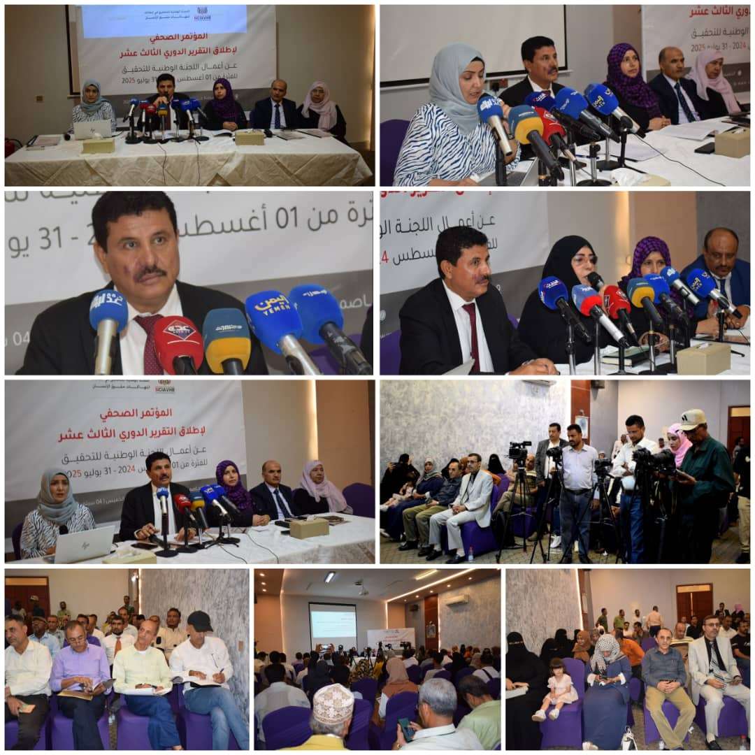 اللجنة الوطنية للتحقيق تطلق تقريرها الدوري الثالث عشر حول انتهاكات حقوق الإنسان في اليمن