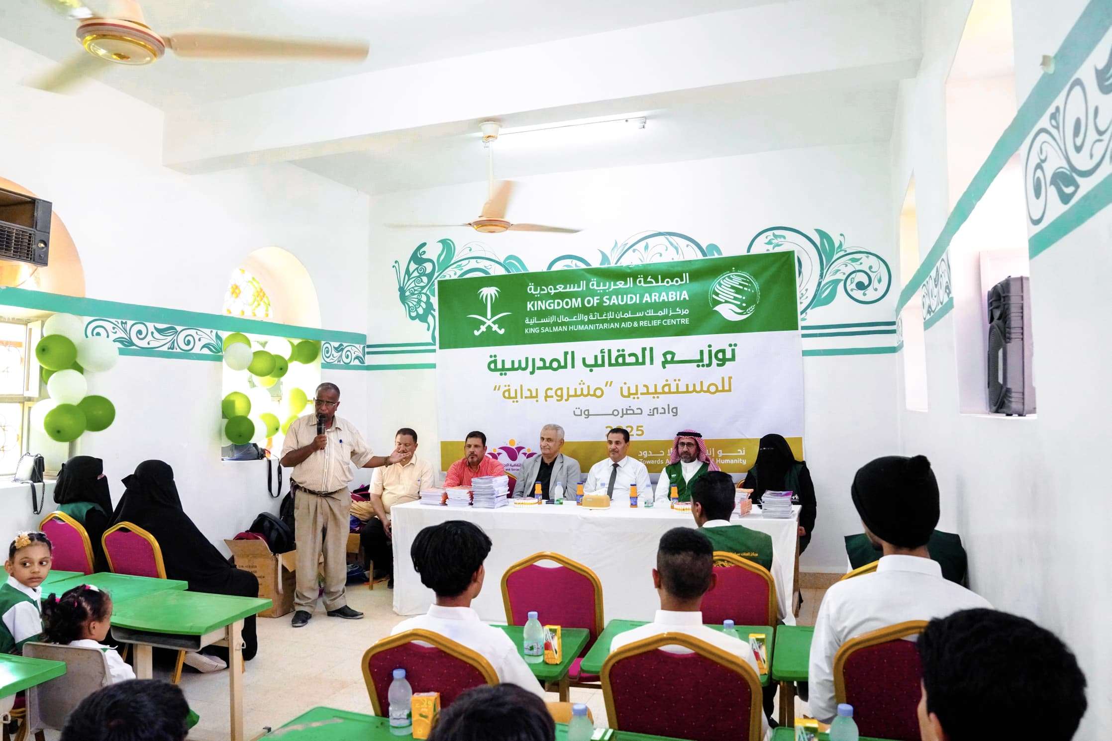 سيئون: مركز الملك سلمان للإغاثة يدشّن توزيع الحقائب المدرسية ضمن مشروع "بداية "