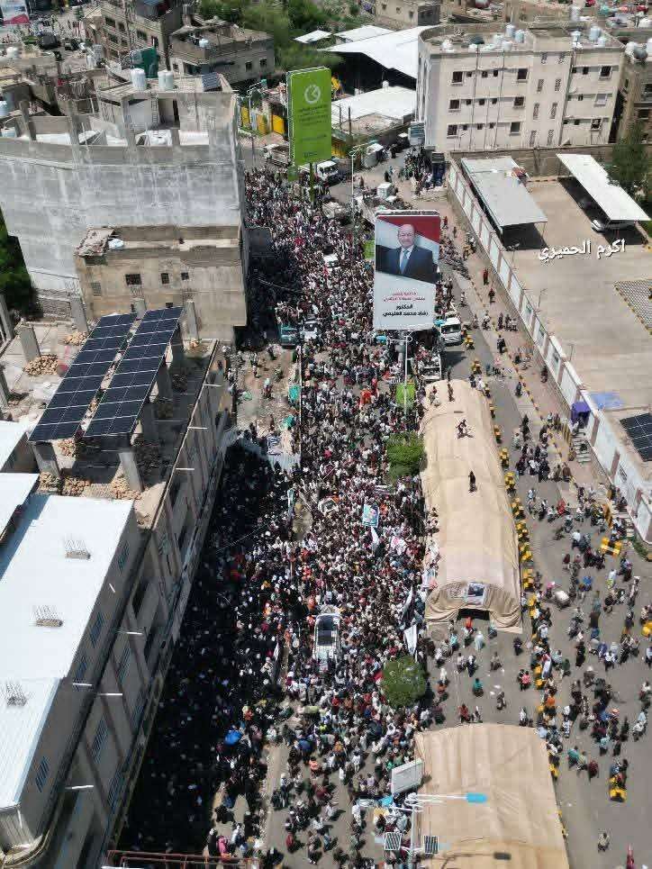 وجابت المسيرة شوارع المدينة وصولاً إلى مبنى المحافظة، حيث احتشد الآلاف من أبناء المدينة من مختلف الأحياء للتعبير عن استيائهم وسخطهم الكبير إزاء الجريمة البشعة التي أودت بحياة المشهري على يد عصابة مسلحة في وضح النهار، في حادثة هزت الرأي العام اليمني.