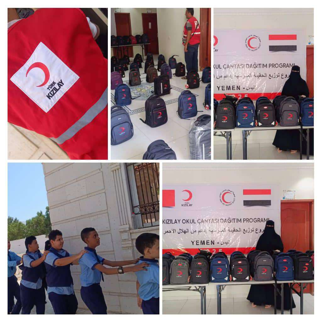 الهلال الأحمر التركي يرسم البسمة على وجوه أطفال التوحد في عدن بتوزيع 100 حقيبة مدرسية