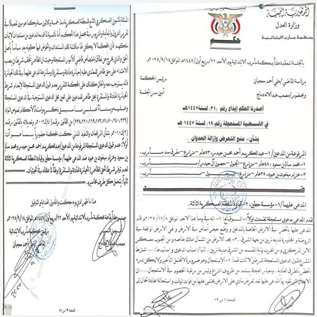 وأشار البيان إلى أن قيادة المنطقة العسكرية الثالثة تلتزم التزامًا كاملاً بالقانون، وتدعو كل من لديه مطالب أو ادعاءات إلى تقديمها عبر الجهات القضائية المختصة، بدءًا من النيابة العامة، مؤكدة استعدادها التام لتنفيذ أي قرارات تصدر عن القضاء بهذا الشأن.