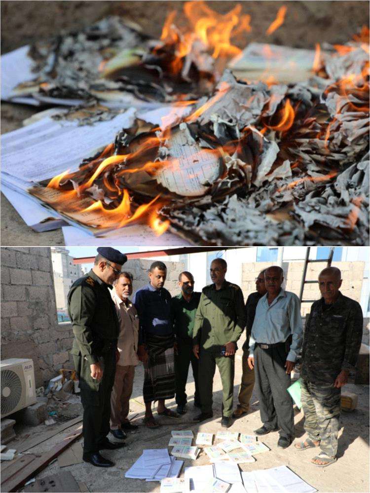أتلفت رئاسة مصلحة الأحوال المدنية والسجل المدني، اليوم، في العاصمة المؤقتة عدن، كمية من الأوراق الثبوتية القديمة التي تم ضبطها في وقت سابق بنقطة مصنع الحديد بمحافظة لحج، أثناء قدومها من مناطق سيطرة مليشيات الحوثي الإرهابية، وكانت في طريقها إلى العاصمة المؤقتة عدن.