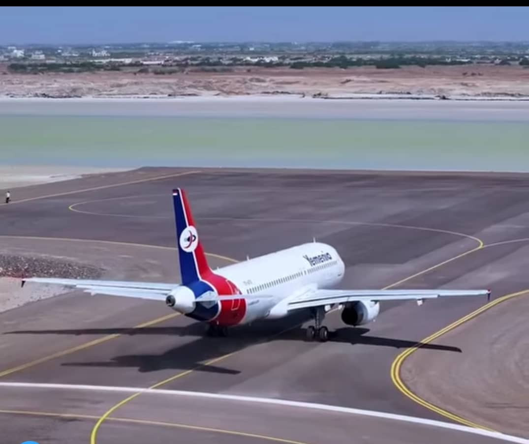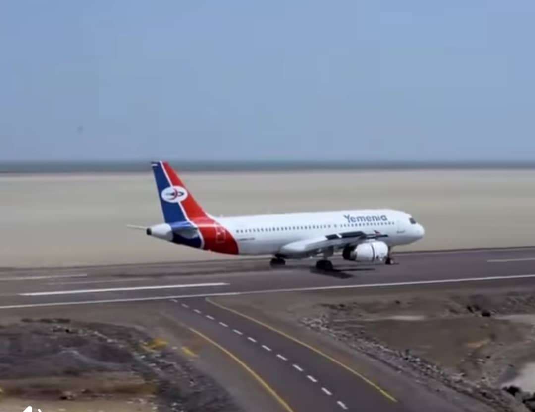 شاهد بالصور.. هبوط أول طائرة للخطوط الجوية اليمنية في مطار المخا الدولي بتعز