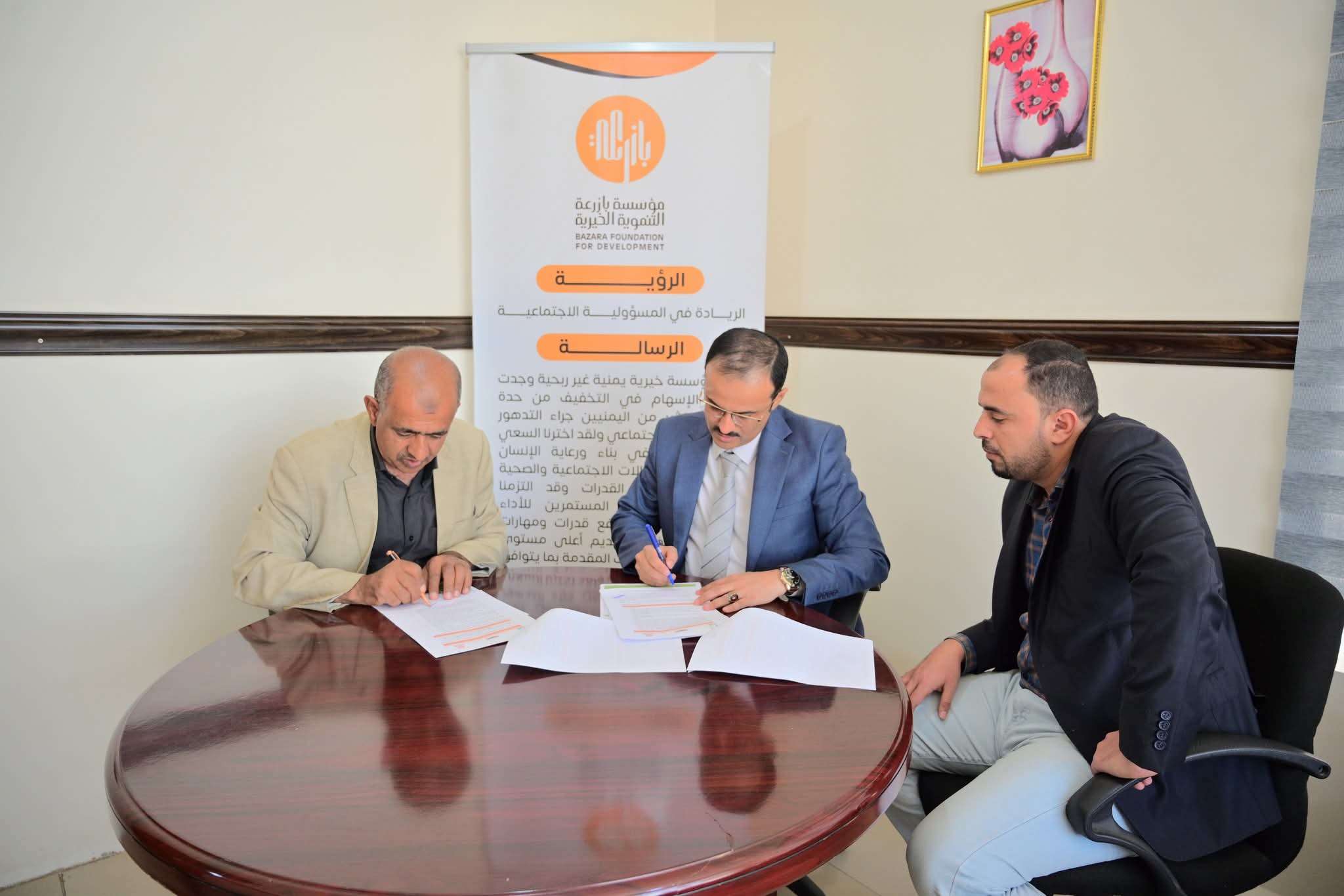وقعت مؤسسة بازرعة التنموية الخيرية، مع جمعية النبراس الصحية، اتفاقية تمويل وتنفيذ "مخيم بازرعة الطبي الـ 23 لجراحة العيون"، بمديرية باجل، محافظة الحديدة.