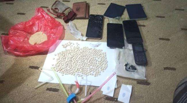 وعُثر بحوزة المتهم على مبالغ مالية بالعملة الأجنبية، وكمية من حبوب الكبتاجون ومادة الشبو المخدّرة، إضافة إلى أدوات للتعاطي.