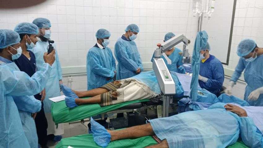 بدورهما، أوضح المدير التنفيذي لمؤسسة نهد، إبراهيم بن ثابت، ومدير مكتب العون المباشر بمحور حضرموت، المهندس عدلي باسيف، أن المخيم يهدف إلى تقديم خدمات طبية متقدمة تشمل إجراء العمليات الجراحية لحوالي 537 مريضاً، وفحص الحالات، وتوزيع الأدوية والنظارات مجاناً.
