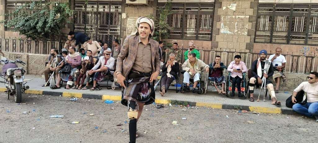 تعز.جرحى الجيش ينفذون وقفة احتجاجية غاضبة للمطالبة بصرف مستحقاتهم المالية، و تحسين أوضاعهم..