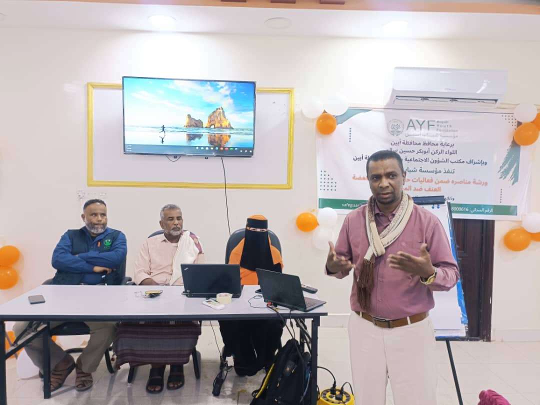 برعاية اللواء الركن أبوبكر حسين سالم، محافظ محافظة أبين، دشّنت مؤسسة شباب أبين صباح اليوم في قاعة المسند للتدريب فعاليات الحملة الوطنية "16 يوماً لمناهضة العنف ضد المرأة"، من خلال ورشة مناصرة استهدفت 45 امرأة من منظمات المجتمع المدني في مديريتي زنجبار وخنفر.