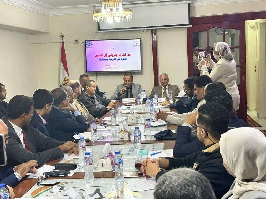 وناقشت الندوة، التي حضرها عدد من السياسيين والخبراء والأكاديميين والحقوقيين والأمنيين والإعلاميين من الجانبين المصري واليمني، قضية الهجرة غير الشرعية من القرن الأفريقي إلى اليمن، وما تمثله من مخاطر وتداعيات متعددة، إضافة إلى أبعاد الظاهرة وانعكاساتها الأمنية والاقتصادية والصحية والتنموية، والتحولات الديمغرافية الناتجة عنها، ومسارات الحلول الممكنة للتعامل مع هذه التحديات.