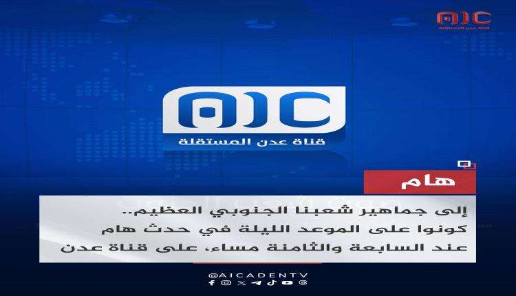 ونشرت قناة عدن إعلان جاء فيه "إلى جماهير شعبنا الجنوبي العظيم.. كونوا على الموعد الليلة في حدث هام، عند السابعة والثامنة مساء، على قناة عدن المستقلة".