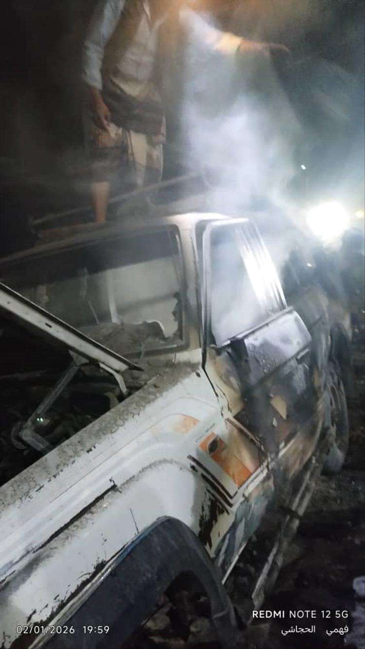 حريق يحرق سيارة مواطن في سوق "سرار" بمديرية يافع