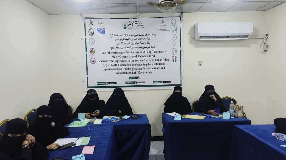 مؤسسة شباب أبين تدشّن برنامجًا تدريبيًا في البناء المؤسسي لـ 20 مؤسسة وجمعية بلحج