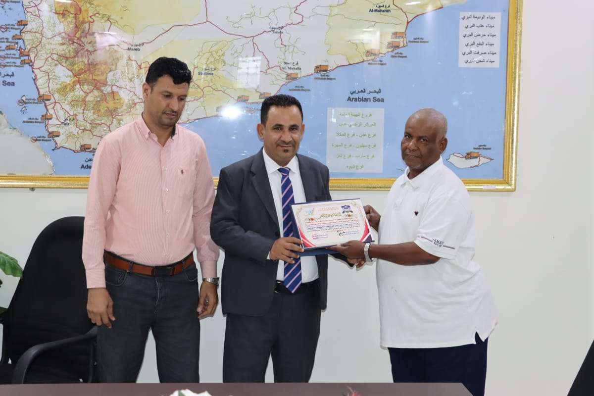 كرمت منظمة الحزب الاشتراكي بمديرية الشيخ عثمان ونادي المجد الرياضي رئيس الهيئة العامة لتنظيم شؤون النقل البري الاستاذ فارس احمد شعفل، بشهادة تقديربة نظير جهوده في تطوير النقل البري.