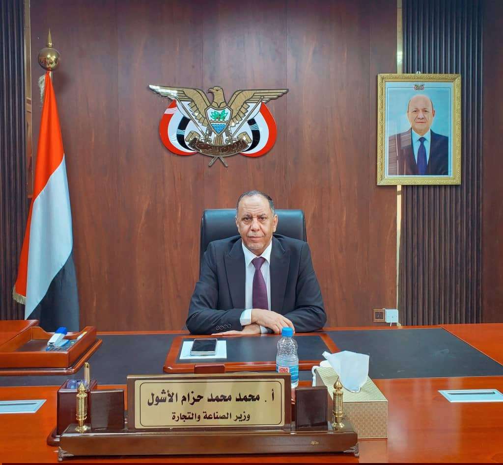 اطّلع وزير الصناعة والتجارة الدكتور محمد الأشول، على التحضيرات الجارية لتنظيم معرض المنتجات الوطنية - عدن 2026، وذلك خلال لقائه بفريق مؤسسة المستثمر للمؤتمرات والمعارض، الجهة المنظمة للمعرض برعاية وزارة الصناعة والتجارة وبالتنسيق مع الغرفة التجارية والصناعية بعدن.