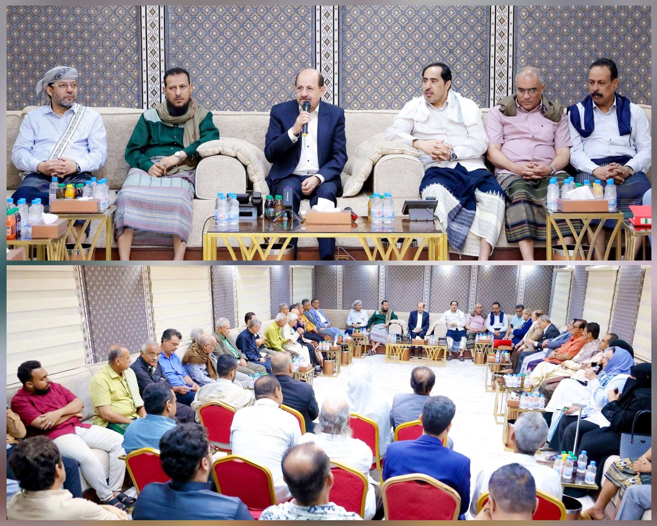 جاء ذلك خلال أمسية رمضانية في عدن بحضور محافظ المحافظة عبدالرحمن شيخ وعدد من القيادات والشخصيات الاجتماعية وممثلي المجتمع المدني والقطاع الخاص، لمناقشة أوضاع المدينة وتعزيز الشراكة بين الحكومة والمجتمع.