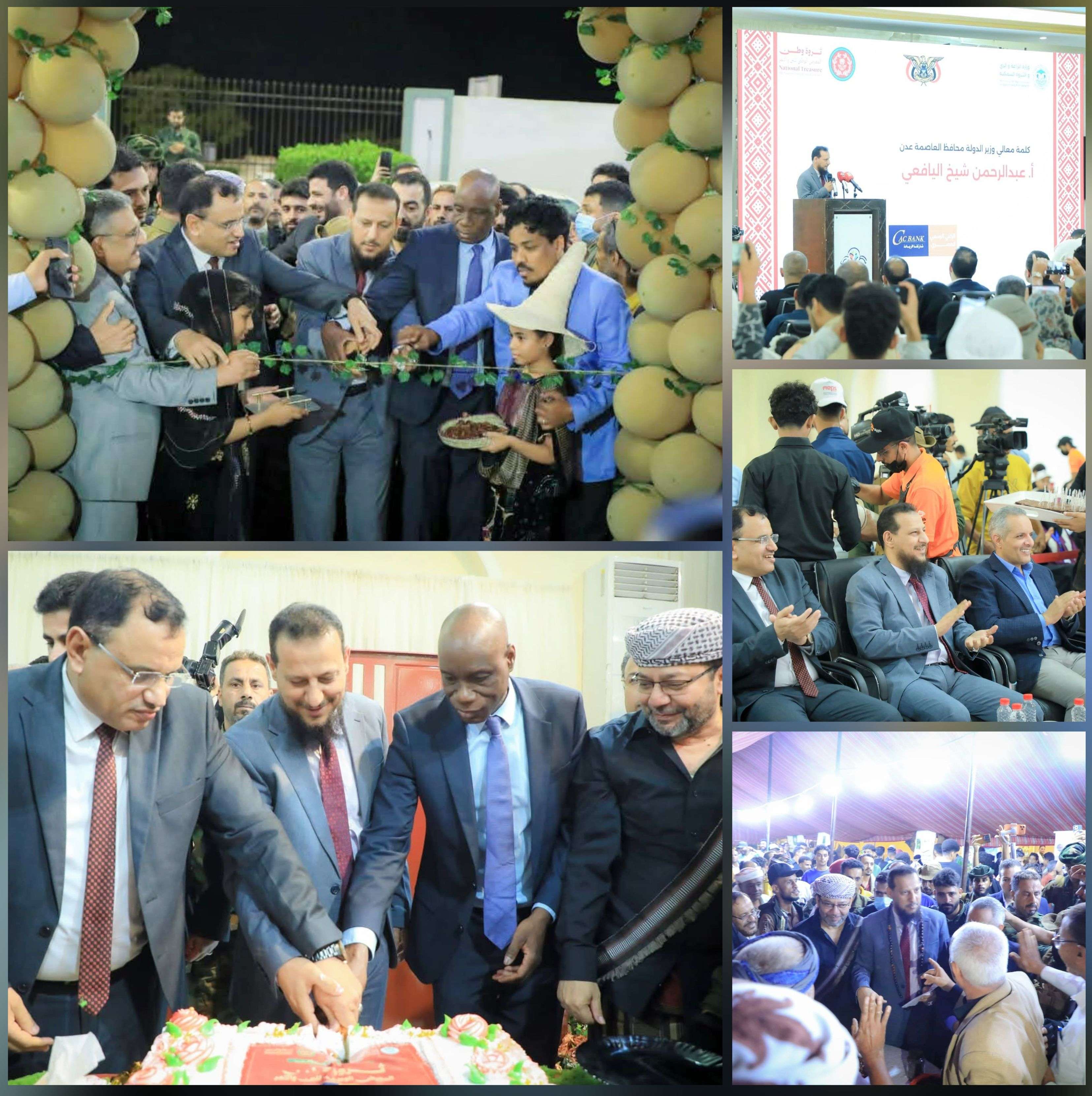 دشّن وزير الدولة محافظ العاصمة عدن عبد الرحمن شيخ، مساء السبت، فعاليات المعرض الوطني للبُن والتمر الذي تنظمه وزارة الزراعة والثروة السمكية تحت شعار «ثروة وطن»، خلال الفترة من 7 إلى 9 مارس، بمشاركة واسعة من المنتجين والمزارعين والجهات المعنية بالقطاع الزراعي.