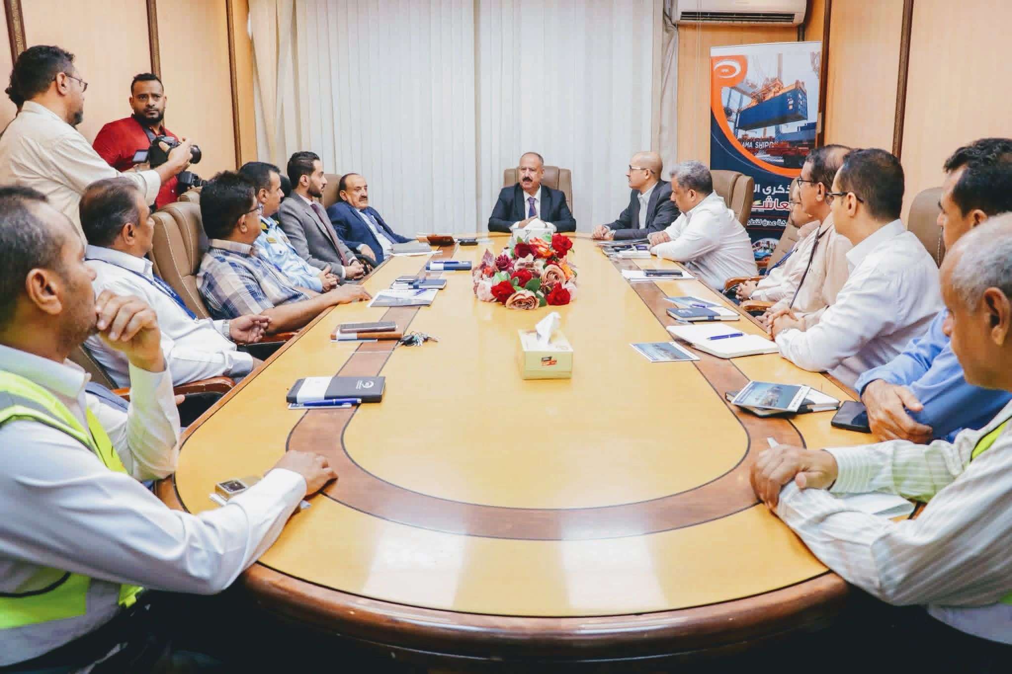 ترأس وزير النقل محسن حيدرة العمري اجتماعاً في شركة عدن لتطوير الموانئ بمحطة الحاويات «كالتكس» لمناقشة سير العمل ومستوى الأداء التشغيلي والتحديات التي تواجه نشاط ميناء عدن.