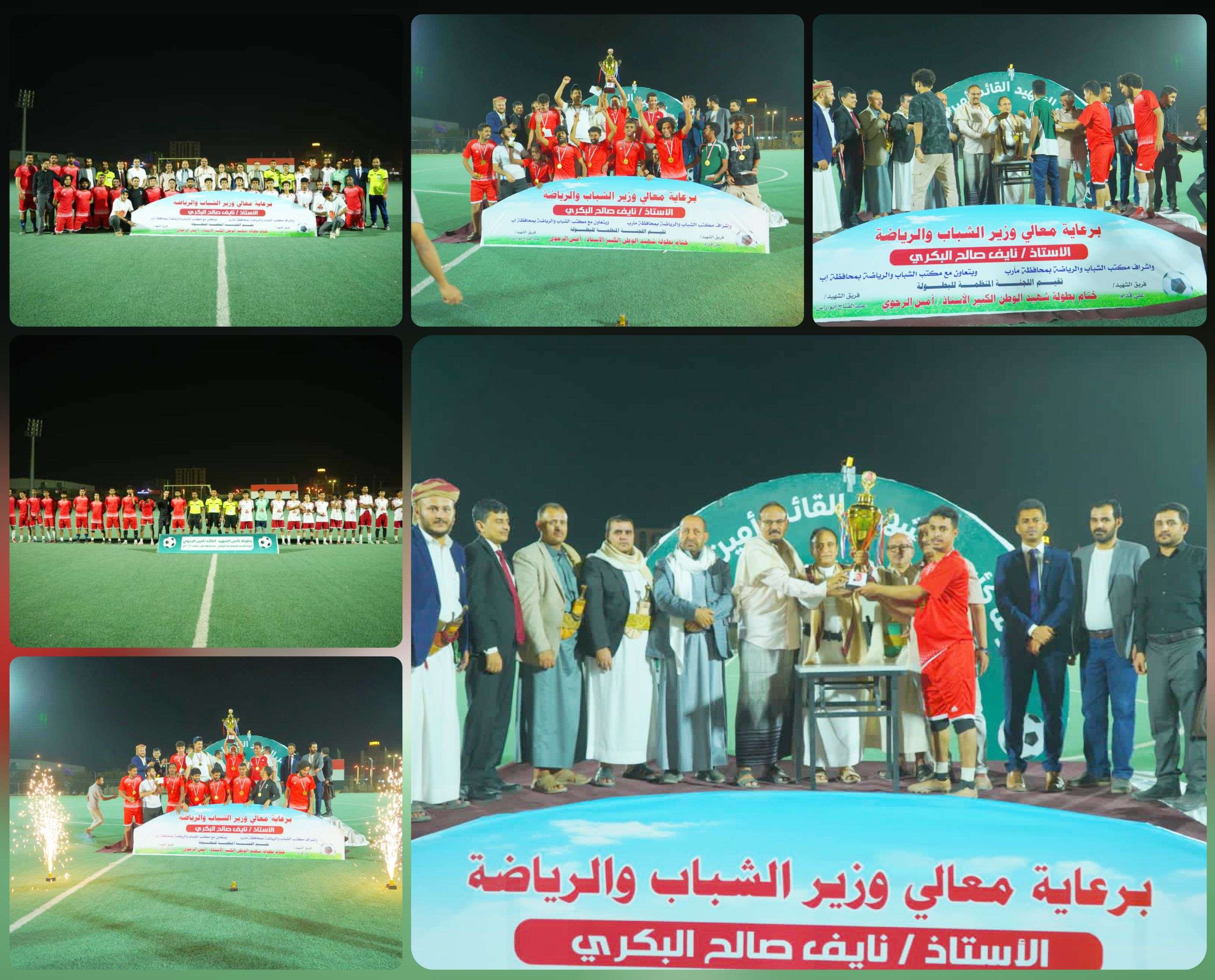 بحضور رسمي وتفاعل جماهيري واسع تتويج فريق "الشهيد علي قُدام" بطلاً لبطولة الشهيد أمين الرجوي في مأرب