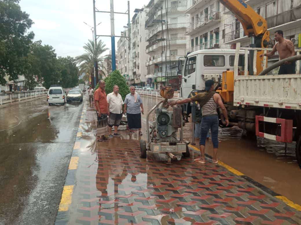 كما أشرف باخبيرة على أعمال شفط وتصريف المياه في مديرية المنصورة، حيث نفذت الفرق الميدانية أعمالها في خط 90 وشارع جميلة، وفتح انسدادات في مناهل الصرف الصحي بمديرية الشيخ عثمان، ضمن خطة طوارئ تهدف إلى الحد من تجمعات المياه وإعادة فتح الطرقات أمام حركة السير.