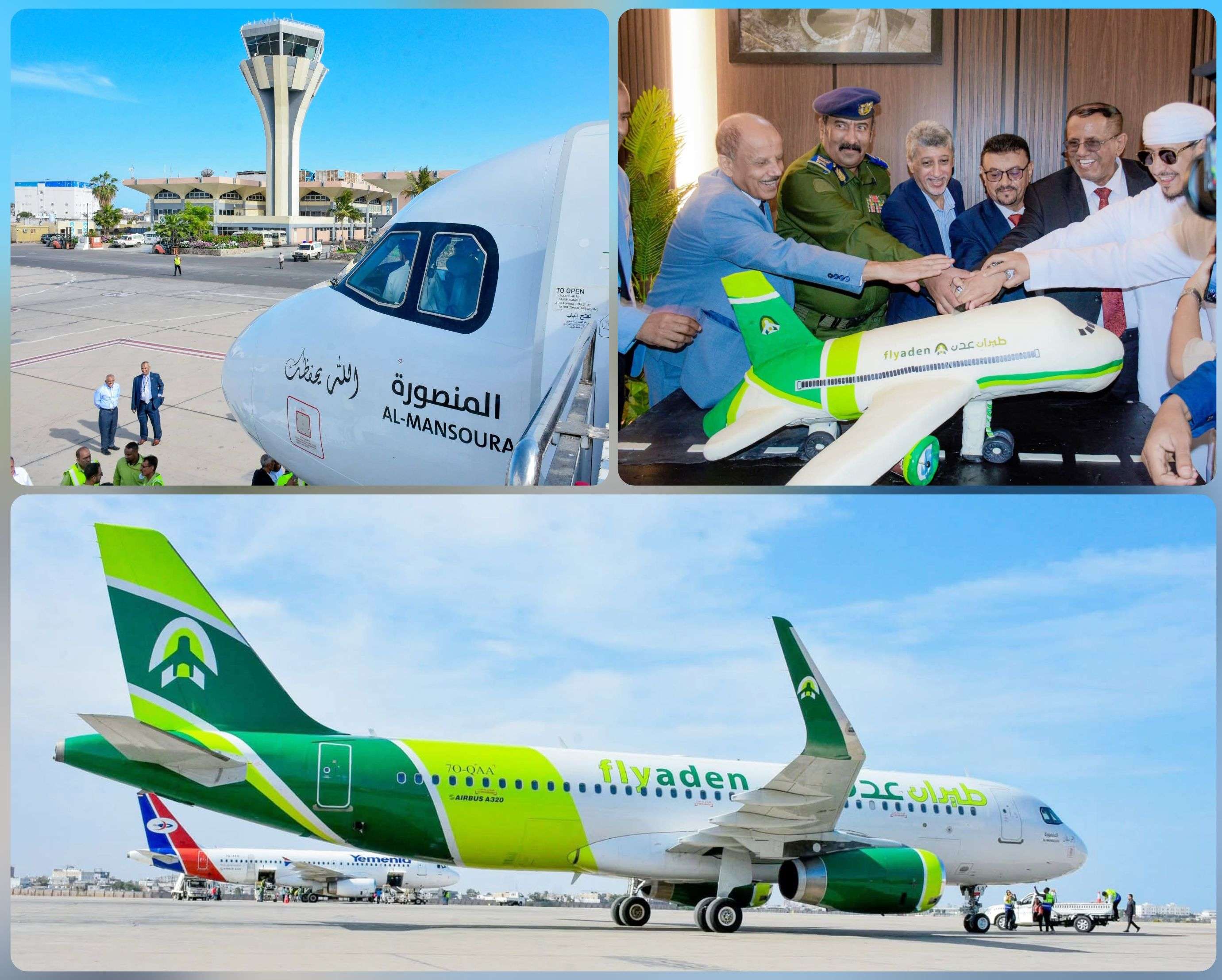 استقبل رئيس الهيئة العامة للطيران المدني والأرصاد، الكابتن صالح بن نهيد، اليوم، في مطار عدن الدولي، أولى طائرات الرحلات التجارية التابعة لشركة "طيران عدن"، والتي تحمل أسم "المنصورة"، والمملوكة لمجموعة القطيبي، وذلك بحضور عدد من القيادات الرسمية والمحلية، وممثلي القطاع الخاص بالعاصمة المؤقتة عدن.