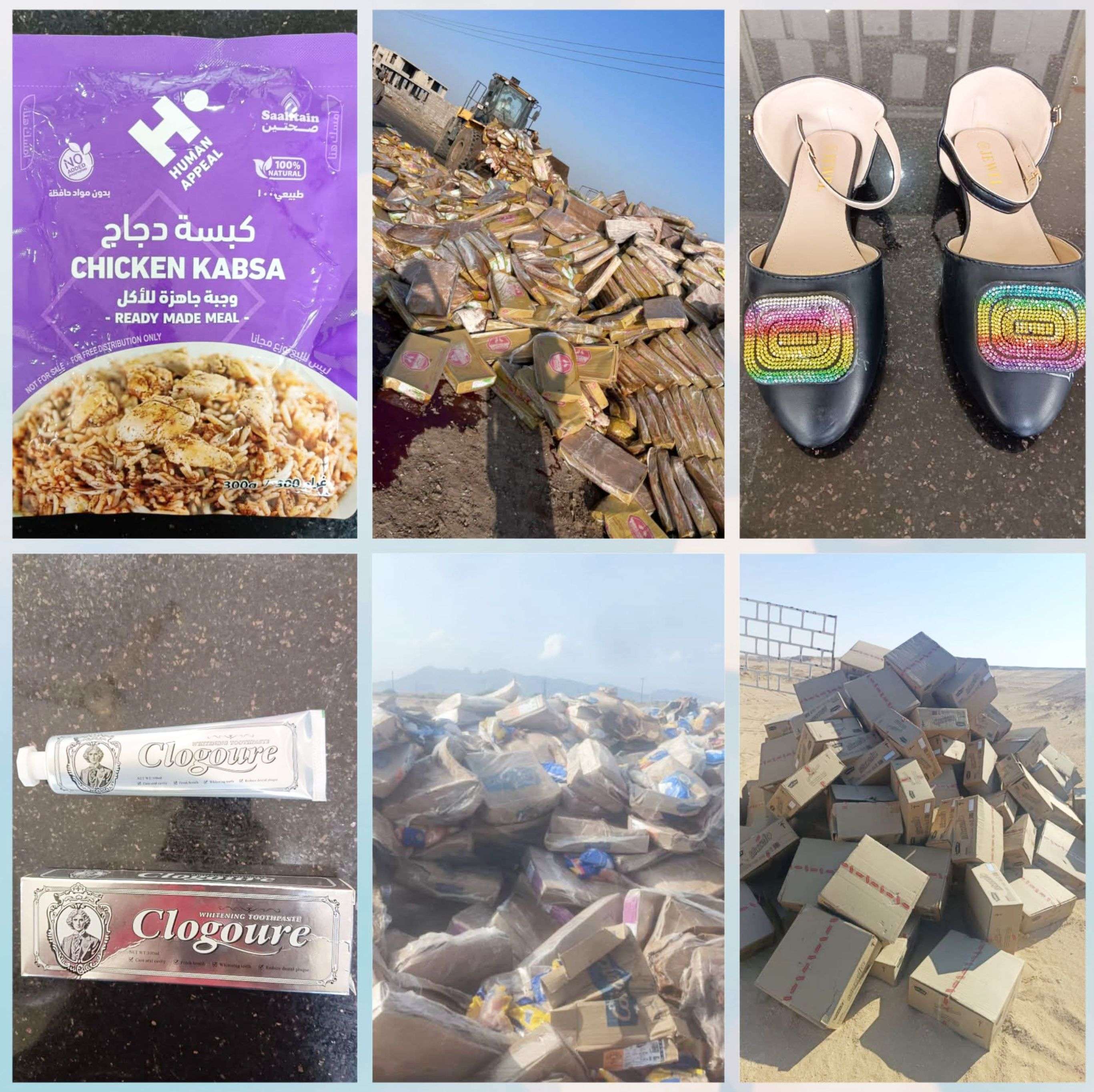 وفي منفذ الوديعة، تم إتلاف 150 كرتون تمر مخالف لفترة الصلاحية، بينما شهد منفذ شحن رفض مكيفات لغياب بطاقة كفاءة الطاقة، وإتلاف حلويات تحتوي على مادة محظورة (E171).