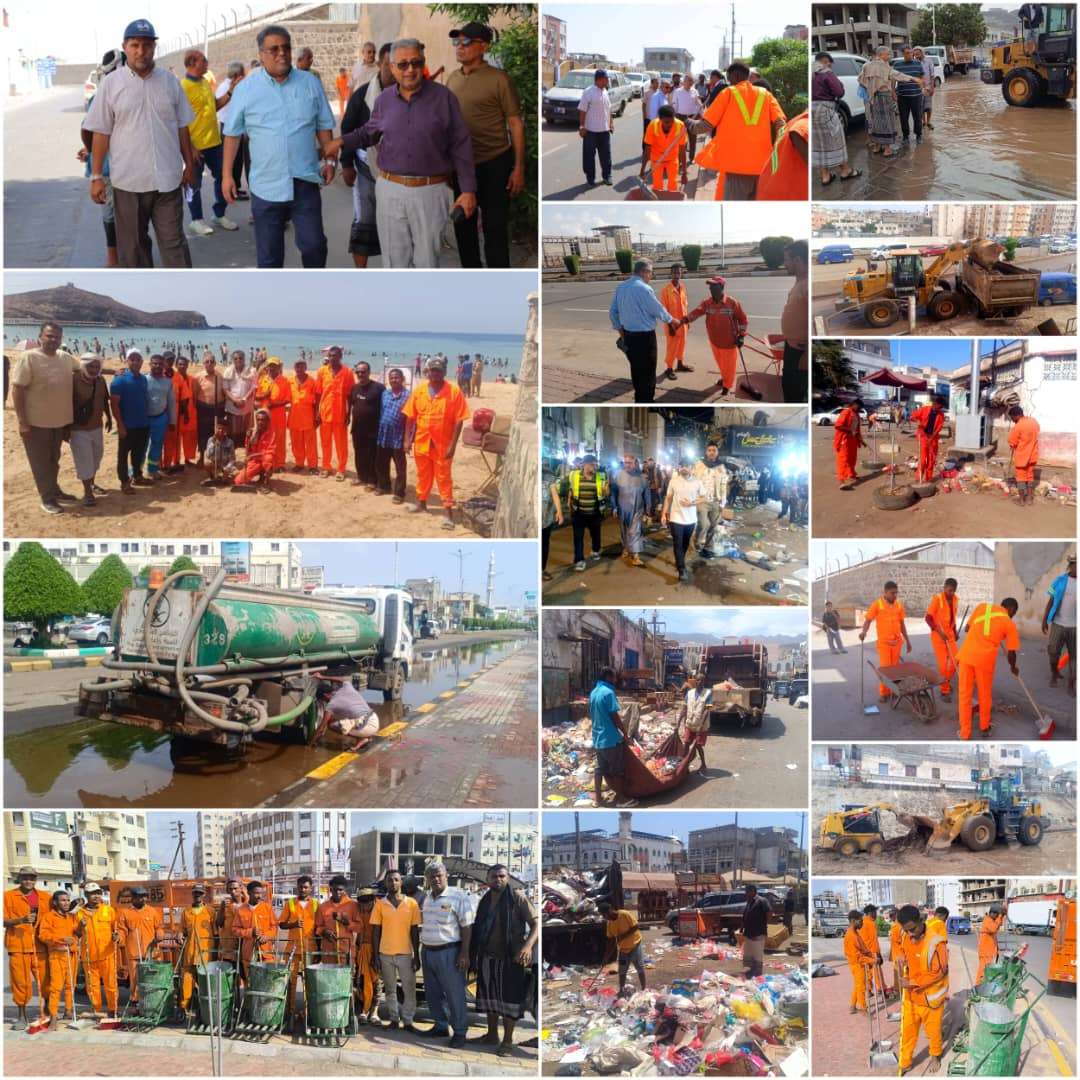 للشهر الثالث على التوالي يواصل صندوق النظافة والتحسين أعمال الحملة المكثفة والمستدامة في جميع مديريات العاصمة عدن الثمان ( المعلا،التواهي،صيرة،خورمكسر،الشيخ عثمان ،المنصورة ،دار سعد،والبريقة ) والتي سبق وأن دشنها معالي وزير الدولة محافظ العاصمة عدن / عبدالرحمن شيخ بمعية وكيل أول العاصمة عدن محمد نصر شاذلي وتحت شعار: