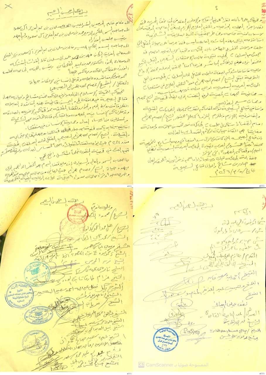 وطالبت القبائل بسرعة نقله لتلقي العلاج في الخارج، ورفع ما وصفته بحالة التعنت التي تعيق مسار قضيته، محذّرة من تداعيات إنسانية خطيرة في حال استمرار الوضع الراهن.