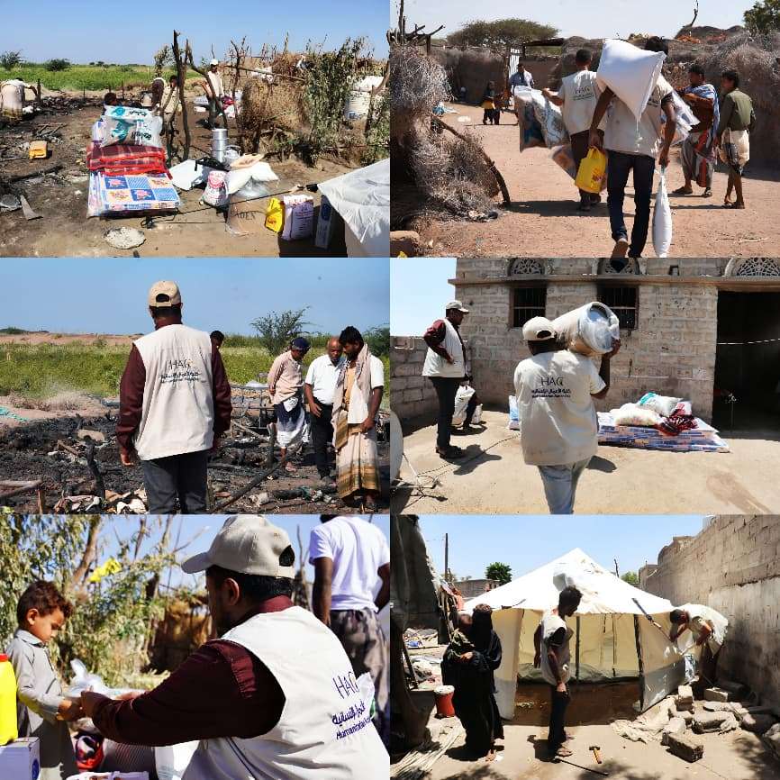 الحديدة.. خلية الأعمال الإنسانية تغيث أسرًا متضررة من احتراق منازلها في الخوخة