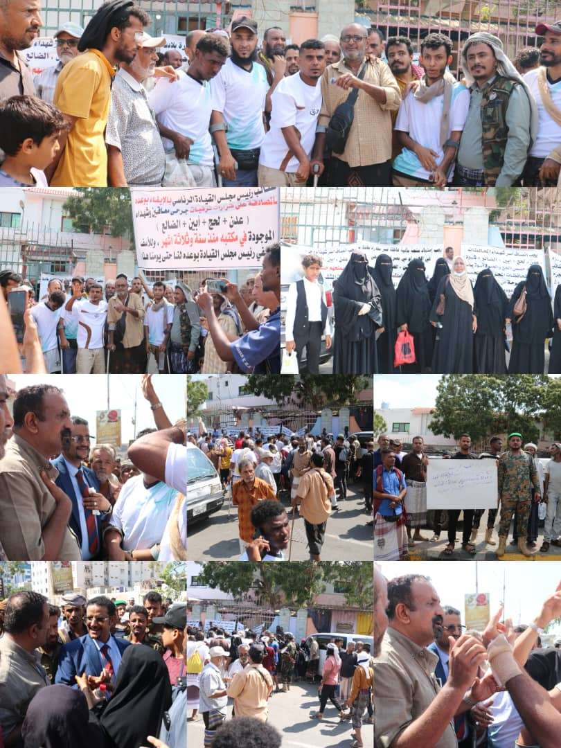 لجنة اعتصام الجرحى وأسر الشهداء تواصل احتجاجها أمام معاشيق بعدن للمطالبة بحقوقها