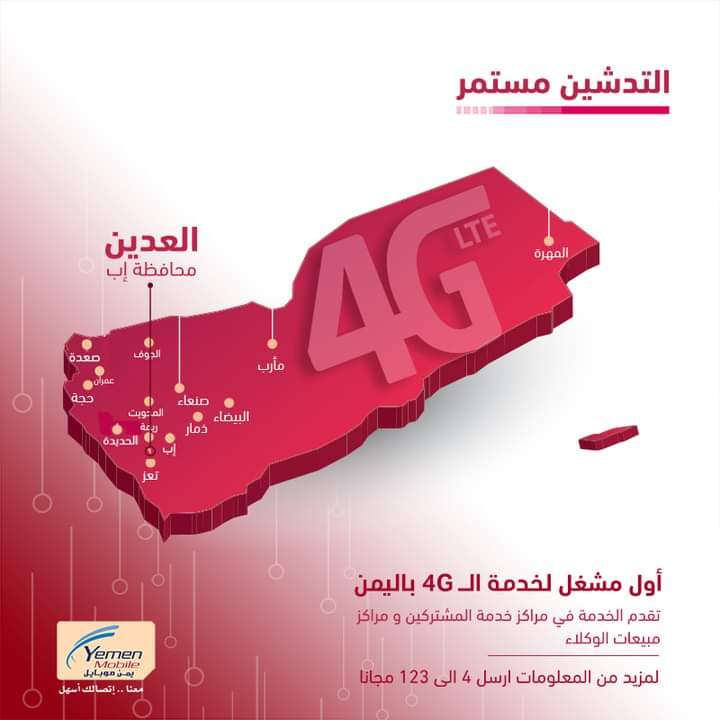 يمن موبايل تدشن خدمة 4G في محافظة اب