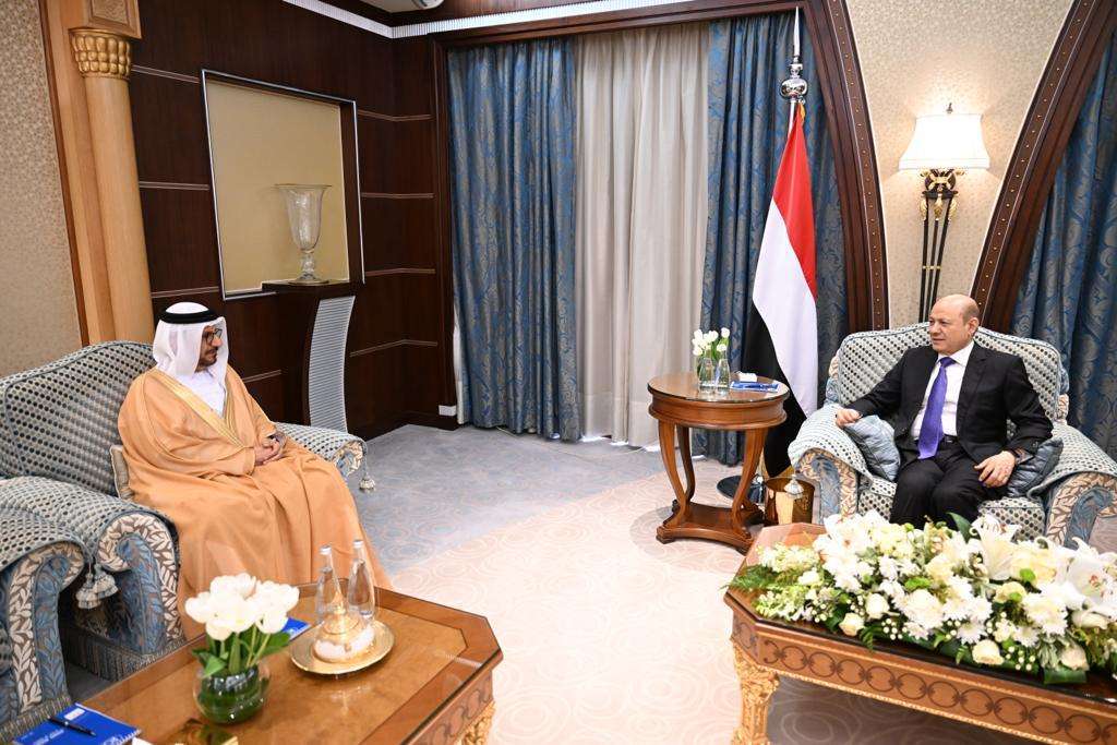 وفي اللقاء اشاد رئيس مجلس القيادة الرئاسي بدور الامارات الفاعل في اطار تحالف دعم الشرعية، وتدخلاتها الانمائية والانسانية للتخفيف من معاناة الشعب اليمني.