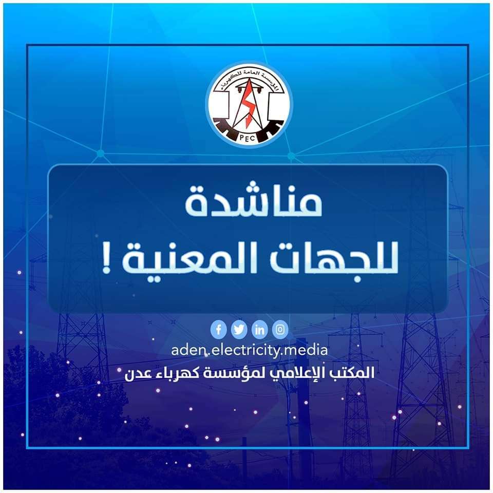 مناشدة عاجلة من كهرباء عدن