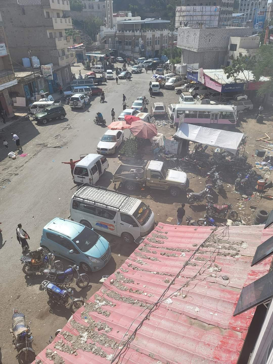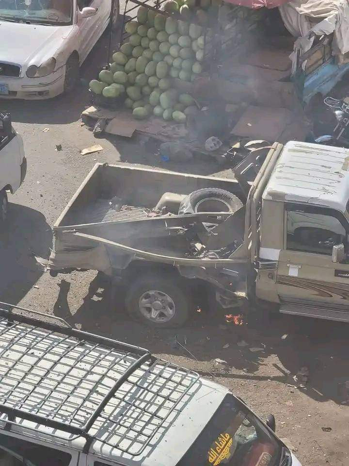 شهود عيان قالوا إن عبوه ناسفة انفجرت بطقم أمام مطعم وضاح بتعز، البوم الأربعاء،.