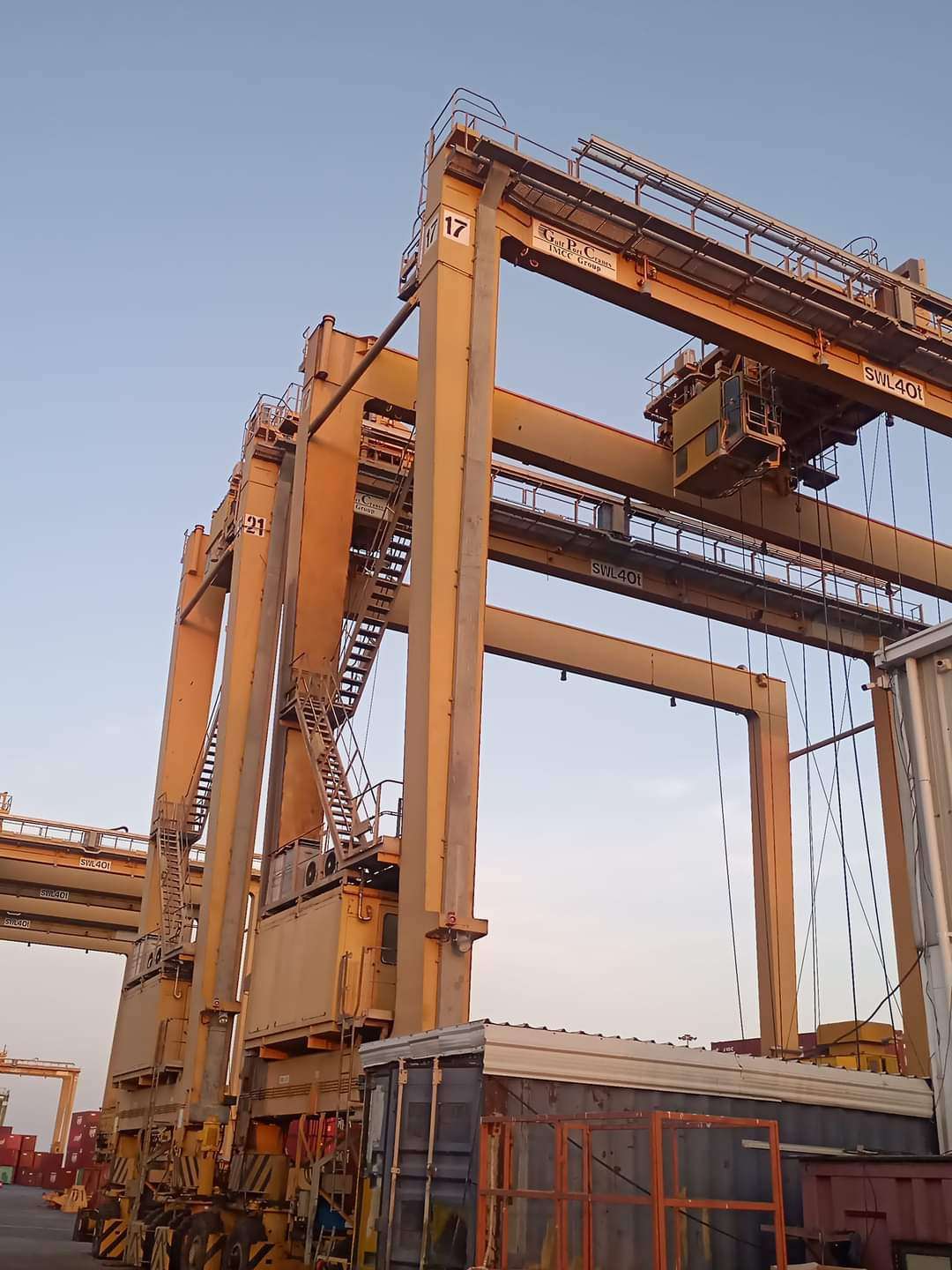 الحاضنة المطاطية (17) RTG طور الصيانة الدورية في محطة عدن للحاويات
