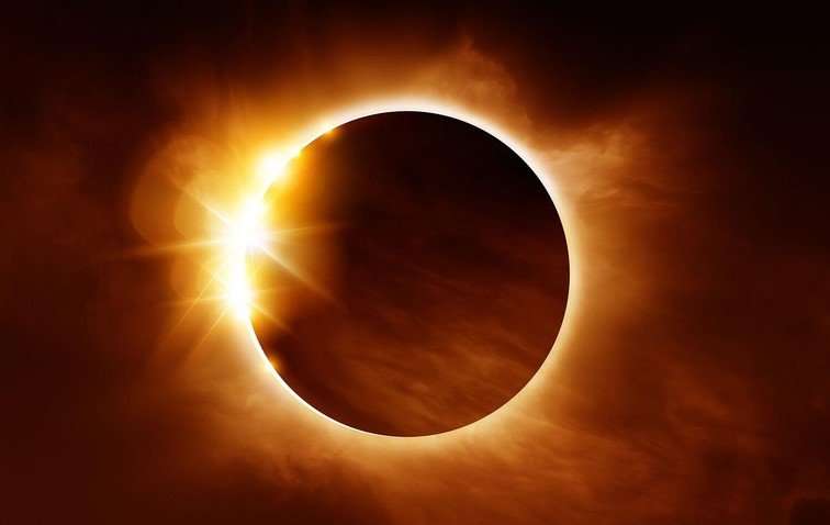 وظاهرة كسوف الشمس تحدث عندما تتراصف الشمس والقمر والأرض على خط مستقيم.