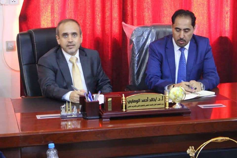 ناقش وزير التعليم العالي والبحث العلمي والتعليم الفني والتدريب المهني ا. د. خالد الوصابي، اليوم الثلاثاء، بديوان عام الوزارة، مع وزير الشباب والرياضة نايف البكري، مذكرة التفاهم بين الوزارتين.