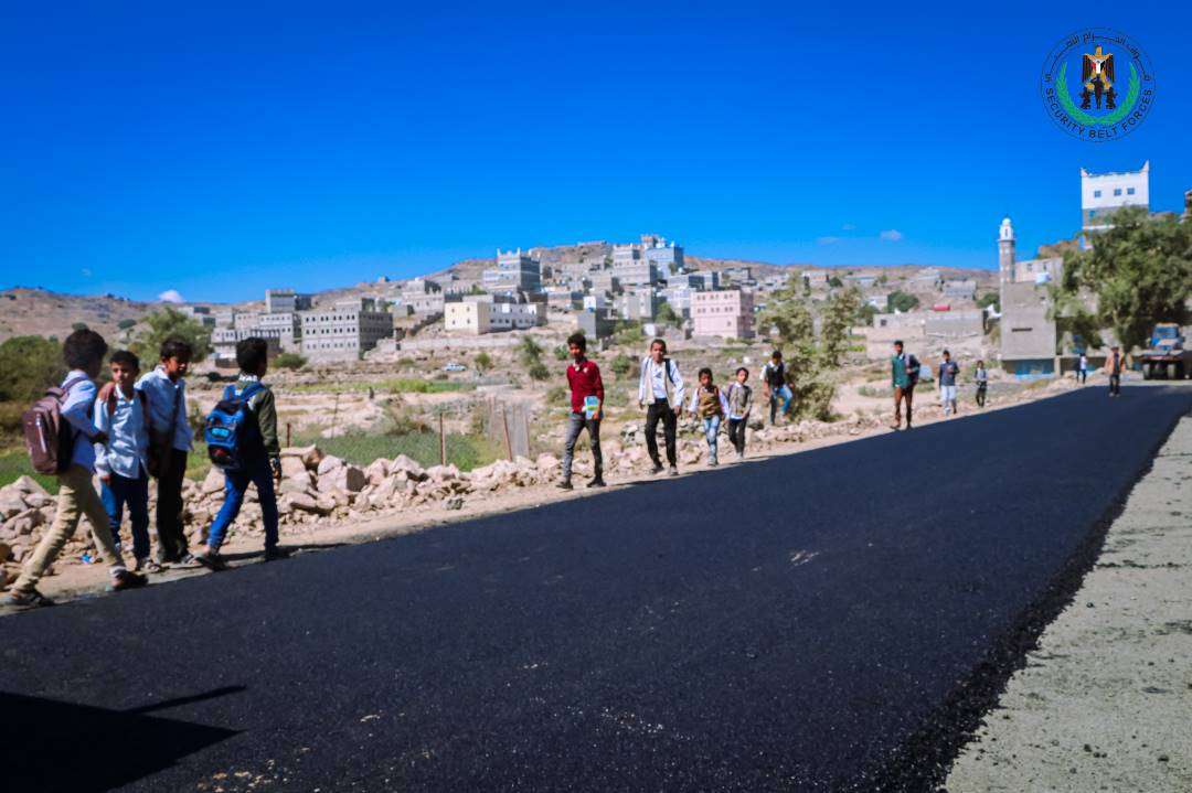 واضاف الحربي: دشنا اعمال سفلتة طريق "الخربة،الحصن "بمديرية الحد بطول واحد كيلو واربع مئة متر وهو الخط الواصل بين الحد يافع ومديرية ذي ناعم بمحافظة البيضاء اليمنية ، بعد ان توقف العمل فيه لأكثر من عشرين عام ، وعانى ابناء تلك المناطق من اضرار عدة سببتها القاطرات التي تمر بمناطقهم جراء تصاعد الاتربة وما تسببه لهم من امراض عدة ، وكذا اعادة تأهيل ثلاث مئة متر في مديرية يهر بعد تدهور الطريق مؤخراً وما سببته من حوادث واعاقة في الحركة، وذلك بتمويل من اللجنة الاقتصادية ولجنة الموارد مكتب يافع .