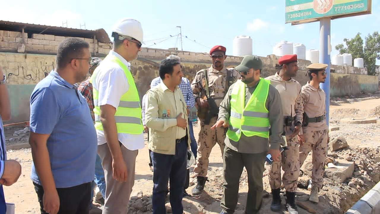 الوزير الحريزي يتفقد مشروع الطريق الخلفي للسجن وسوق الخضار بالمنصورة