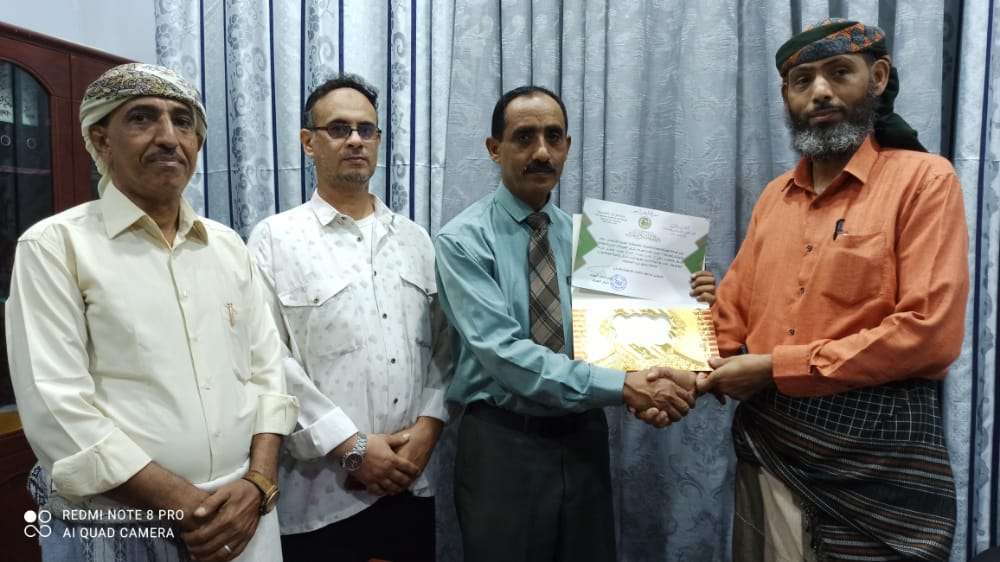 كرمت قيادة الهيئة العامة للتامينات والمعاشات، المركز الرئيس بعدن، مدير مكتب بريد المنصورة بمحافظة عدن، نظير دوره الإيجابي تجاة المتقاعدين.