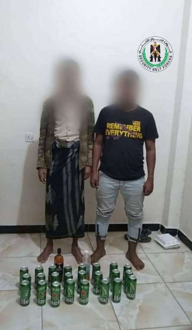 حزام عدن يقبض على مروجي للخمور الخارجية