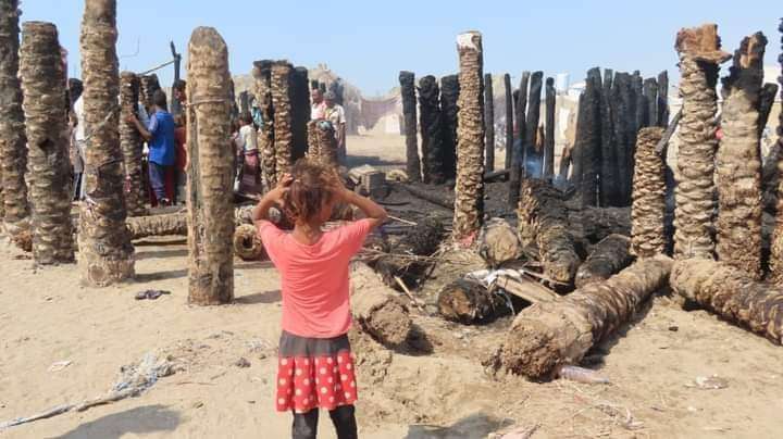 مصادر حقوقية، أفادت بان حريق اندلع في مخيم عطاء للنازحين الفارين من بطش مليشيا الحوثي الإيرانية، في منطقة اليابلي شرق الخوخة.. مشيراً إلى التهام ألسنة اللهب لـ3 منازل مبنية من القش وسعف النخيل، مما أدى إلى احتراقها بشكل كلي مع محتوياتها من مواد غذائية وايوائية.