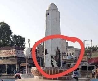 تداول ناشطون صورة لتعرض دوار بارز وسط عدن للتخريب.