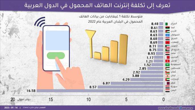 وأوضحت بيانات الموقع أنّ اليمن يعد أغلى دولة عربية من حيث متوسط سعر استهلاك واحد غيغابايت من الإنترنت بواقع 16.58 دولاراً.