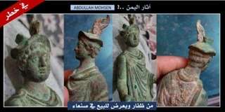 كشف باحث يمني متخصص في الآثار، عن عرض تمثال برونزي ووجه أسد أثري، للبيع في العاصمة صنعاء.