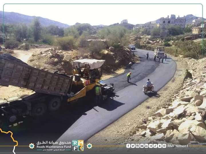 وجرى استئناف اعمال المشروع بتنفيذ و استكمال أعمال فرش طبقة الاسفلت للطريق الاستراتيجي الذي يربط اهم المديريات من المحافظة إلى مديريات الشعيب والحصين .