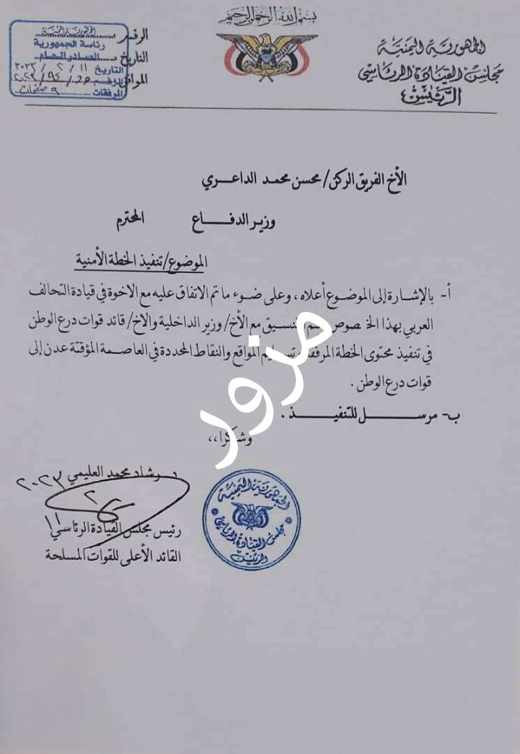 نفي مذكرة رئاسية مزورة بشأن قوات درع الوطن