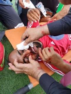 وتسبب تدافع عنيف باصابته في الراس خلال المباراة الكروية.