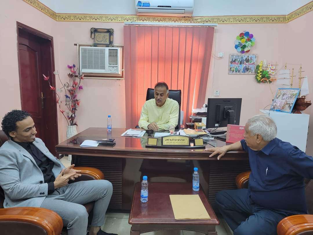 استقبل الاستاذ عبدالرحيم جاوي مدير عام مديرية المعلا في مكتبه الاخ مؤمن السقاف رئيس دائرة الشباب والرياضة في الامامة العامة للمجلس الانتقالي الجنوبي والاستاذ عبدالجبار سلام رئيس اتحاد كرة القدم فرع عدن والكابتن وجدان الشاذلي مدير عام مكتب الشباب والرياضة م عدن .