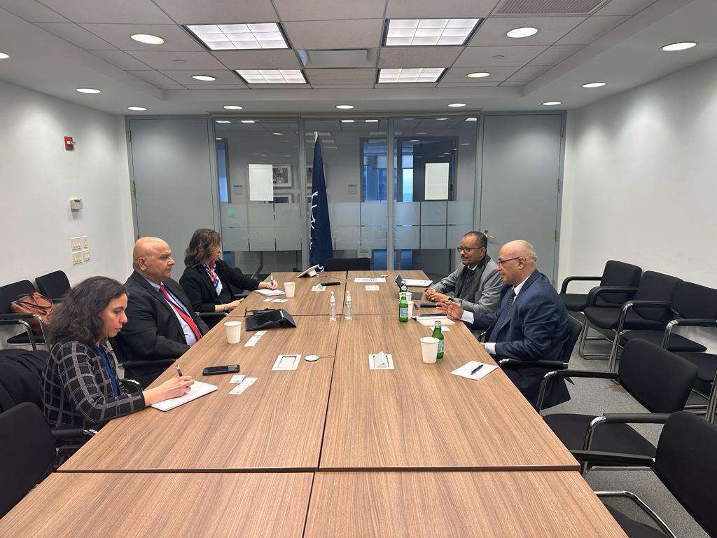 التقى وزير المياه والبيئة المهندس توفيق الشرجبي، اليوم، على هامش أعمال مؤتمر الأمم المتحدة للمياه المنعقد في نيويورك، المدير الإقليمي للبنك الدولي ساروج كومار جاه.