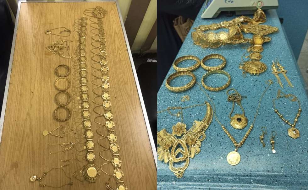 وأشارت الى أنه عند "تفتيش حقائب الراكبة القادمة من عدن، تم اكتشاف 14 قطعة متنوعة من المشغولات الذهبية بوزن 800 جرام، حاولت اخفائها داخل تلك الحقائب".